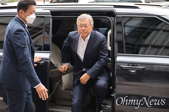 | ▲ 19일 오후 문재인 전 대통령이 단식투쟁 도중 건강이 악화되어 서울 중랑구 녹색병원에 입원한 이재명 더불어민주당 대표를 만나기 위해 도착하고 있다. |