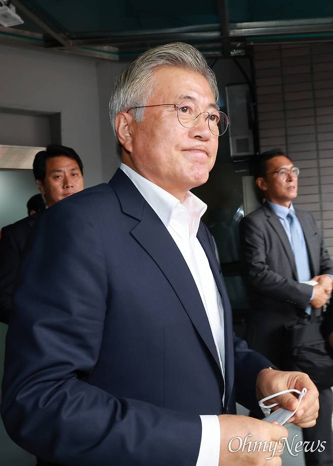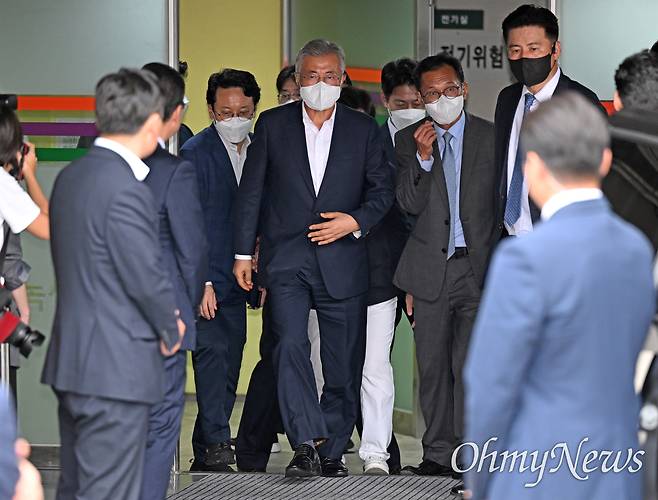 | ▲ 19일 오후 문재인 전 대통령이 단식투쟁 도중 건강이 악화되어 서울 중랑구 녹색병원에 입원한 이재명 더불어민주당 대표를 만난 후 병원을 떠나고 있다. |