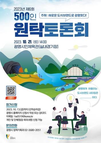 시는 10월 21일 오후 2시 광명시민체육관 실내경기장에서 '새로운 도시브랜드로 광명 찾다'를 주제로 '제6회 광명시민 500인 원탁토론회'를 개최한다고 19일 밝혔다.