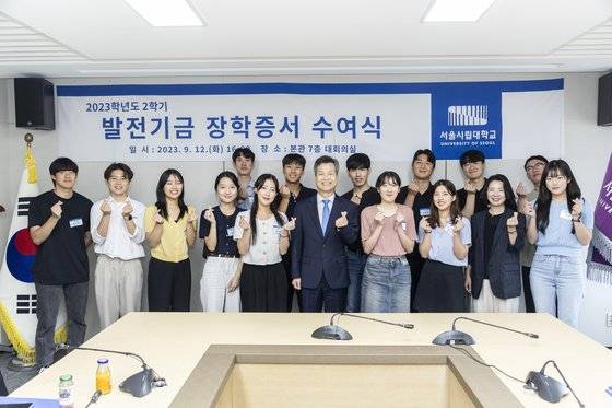 서울시립대학교(총장 원용걸)가 지난 12일 학교 발전 및 위상 제고 장학생을 포함하여 총 71명의 학생들에게 서울시립대학교 발전기금 장학증서를 수여했다.