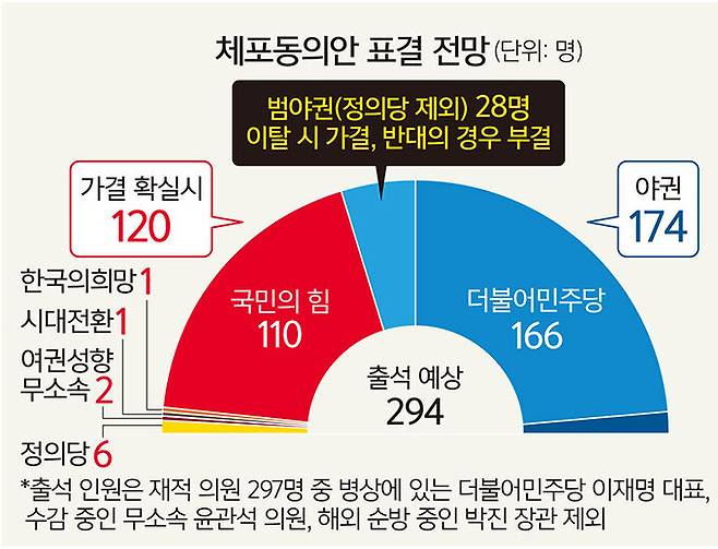 지난 2월 이 대표 1차 체포동의안 표결 때 기권 등을 포함해 최소 31표가 이탈한 것으로 추정되는 만큼, 이 표 상당수가 가결로 향할 것이란 전망도 나온다. 비명계 이원욱 의원은 이날 기자들과 만나 “(1차 표결 때 기권·무효 투표한) 사람들에게 물어보니까 ‘이번엔 가결해야지’ 하는 분들이 꽤 있다”고 말했다.