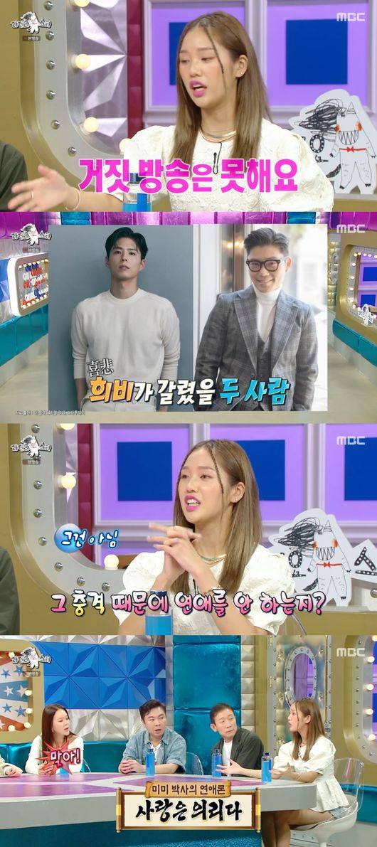 예능 대세로 부상한 미미가 최근 출연한 예능은 채널A 연애 예능 '하트시그널4'였다. 정작 미미는 "연애에 관심이 없다"라고 털어놨다. 심지어 그는 "전 남자친구도 바람 피워서 끝났다"라고 말해 충격을 자아냈다. 그는 "제가 '썸' 같은 것도 안 좋아한다. 시간을 넣고, 감정을 소비도 하는 게 저는 굉장히 소모적이고 아깝다는 생각이 들더라"라고 말했다.
