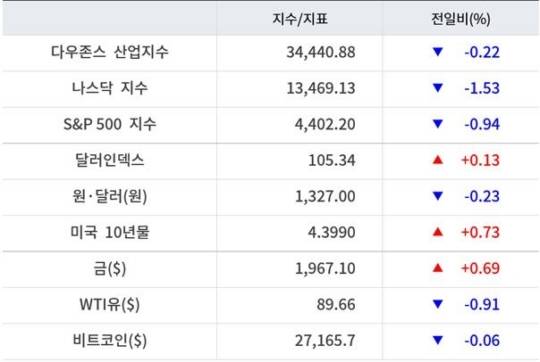 [특징주] ■기술주 기술주가 하락했다. 애플 2%, 마이크로소프트 2.4%, 엔비디아 2.94%, 알파벳 3.12%, 아마존 1.7%, 메타 1.77% 하락했다.