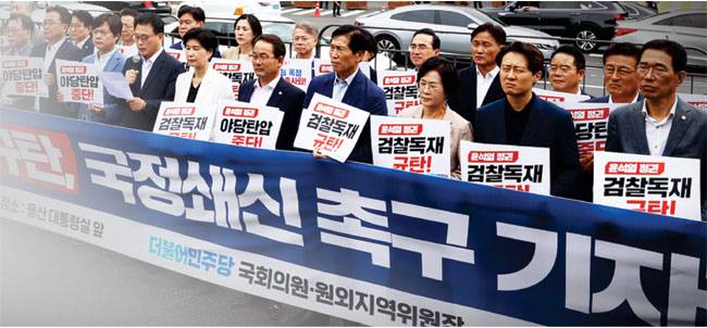 이 대표는 “윤석열 정권의 부당한 국가권력 남용과 정치검찰의 정치공작에 제대로 맞서지 못하고, 저들의 꼼수에 놀아나 굴복해서는 안 된다”고도 했다. 수차례 체포동의안의 ‘부당성’이 강조된 건 민주당이 특권 포기의 전제조건으로 ‘정당한 영장청구’를 내세웠던 것을 의식한 표현이다.