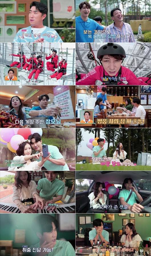심형탁과 처가 식구들의 서울 나들이가 훈훈하게 마무리 된 가운데, 다음으로 신성-박소영의 데이트 현장이 펼쳐졌다. 이날 신성은 자신의 집 근처에 있는 선유도 공원으로 박소영을 초대했다. 이때 그는 “(선유도 공원은) 누군가가 생기면 데려왔으면 좋겠다고 생각했던 곳”이라고 털어놨다. 잠시 후, 신성-박소영은 웨딩사진 명당을 돌며 꽃다발, 화관 등 소품까지 활용해 커플사진을 완성했다. 그런데 이때, 장동민은 ‘큰오빠 모드’를 켜더니 “웨딩사진?”이라고 급발진 해 웃음을 안겼다.