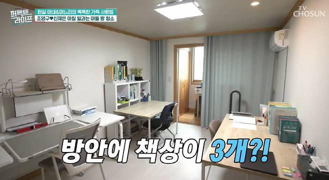 이날 방송에서는 조영구, 신재은 가족의 집도 공개됐다. 특히 책상만 3개가 있는 '영재' 아들의 공부방이 시선을 사로잡았다.