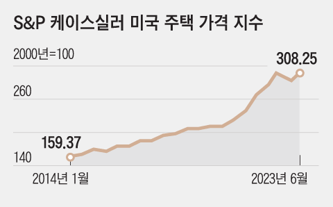 작년 3월 연방준비제도(연준)가 기준금리를 올리기 시작하자 시장에서는 지난 10년간 꾸준히 오른 집값이 이제는 잡히리라는 예상이 나왔다. 통상 대출 금리가 상승하면 이자 상환 부담이 늘어 주택 매수 수요가 얼어붙고 가격이 하락하기 때문이다. 실제 작년 한 해 미국 기준금리가 4.25%포인트 급등하자 집값 상승세가 주춤했다. 그러나 이런 상황은 오래가지 못했다. 미국 집값을 보여주는 지수인 ‘S&P 케이스실러 전국 주택가격 지수’는 작년 7월부터 반년간 하락한 후 올해 2월부터 다시 반등하기 시작했다.