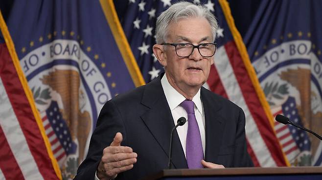 ▲ 기자회견서 추가 금리 인상 시사하는 파월