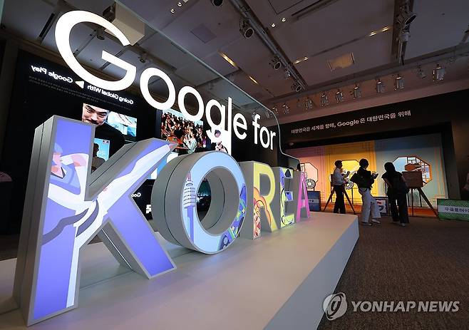(서울=연합뉴스) 김성민 기자 = 구글코리아가 21일 오후 서울 중구 신라호텔에서 연 '구글 포 코리아 2023' 행사에서 관람객들이 사전 전시를 둘러보고 있다. 2023.9.21