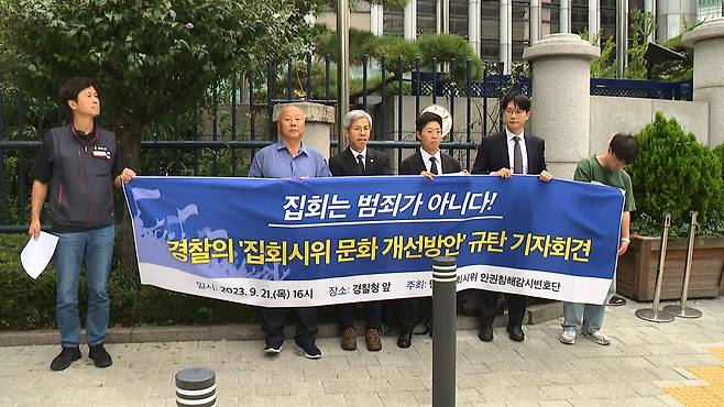 또 "현행 집시법만으로도 이미 경찰의 집회 시위에 대한 자의적인 금지와 통제가 도를 넘어섰다"며 "민주주의를 거꾸로 돌리고 있는 경찰청의 집회 시위에 대한 공격과 탄압 시도를 즉각 철회하라"고 요구했습니다.