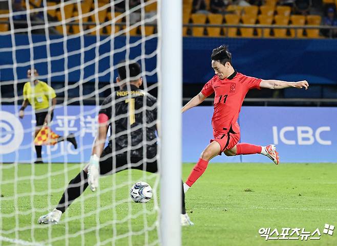 2-0이 되면서 태국은 전의를 상실했다. 한국은 전반 30분 주장 백승호가 프리킥 기회에서 대포알 슈팅을 날리며 상대 간담을 서늘하게 했다. 지난해 카타르 월드컵 브라질전 중거리포를 연상하게 하는 환상적인 슈팅이었다.