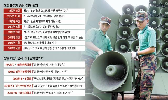 그동안 북한의 심각한 도발이 있을 때마다 확성기를 통한 대북 방송은 가장 강력한 대응 카드로 활용해 왔다. 북한 지휘부가 가장 민감해 하기 때문이다. 북한이 천안함 폭침사건(2010년), 비무장지대(DMZ) 목함지뢰 사건(2015년), 4차 핵실험(2016년) 등 도발에 나섰을 때 그 직후 대북 방송을 즉각 대응했다. 그러나 이후 중단하는 과정을 반복하다 현재는 남북 관계 해빙기였던 2018년 4월 판문점 선언에 따른 신뢰 조치로 대형 확성기를 모두 철거해 5년 5개월간 방송이 중단된 상태다.