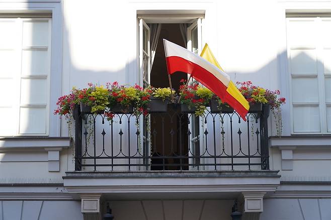 | ▲ 마리 퀴리 기념관에 걸린 폴란드 국기 |