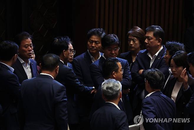 ◇ 김현정> 그렇게 보세요. 어제 한동훈 장관이 표결에 앞서서 이 구속의 이유에 대해 설명하는 자리가 있었는데 고성이 오가고 한바탕 난리가 났었습니다. 분위기 잠깐 보고 올까요?