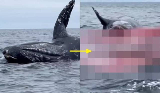 바다 위 고래를 구경하던 사람들이 가까이 다가가려다 충격적인 광경을 목격했다.
