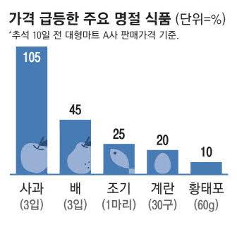 사과값 2배 뛰고 계란 20% 올라 추석 차례상 비용부담 더 커졌다