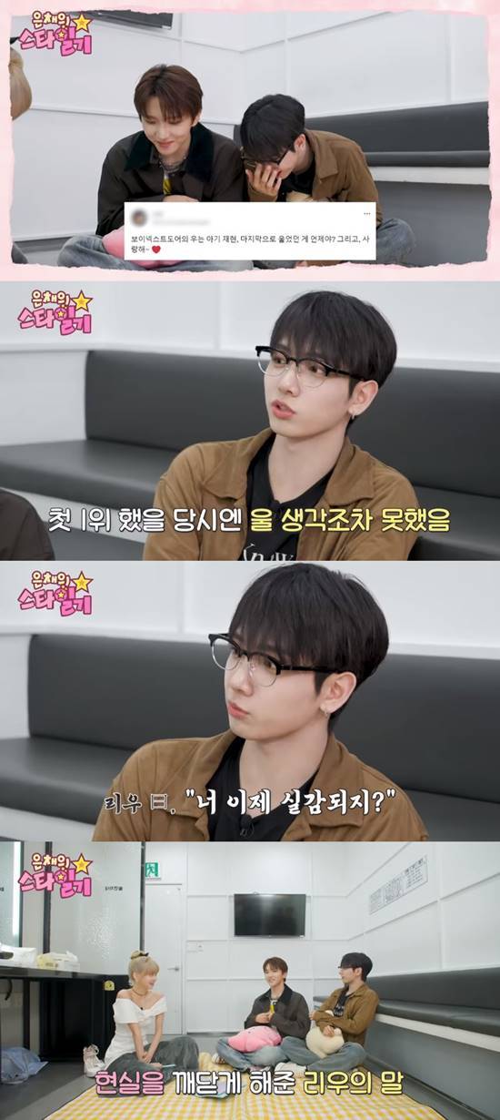 그는 "두 번째 날 1등을 했더니, 옆에서 리우라는 멤버가 저한테 영화 속 대사처럼 '너 이제 실감 나지'라고 했다"라고 이야기했다.