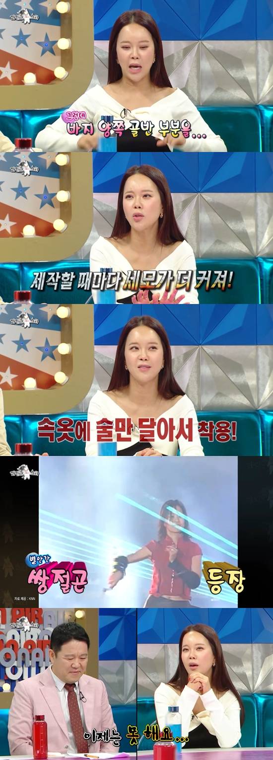 백지영은 김구라가 콘서트에서의 도전할 의향이 없냐고 묻자 "지금은 못 한다. 이제 살 지분이 많은 건 못 입는다"고 고개를 저었다.