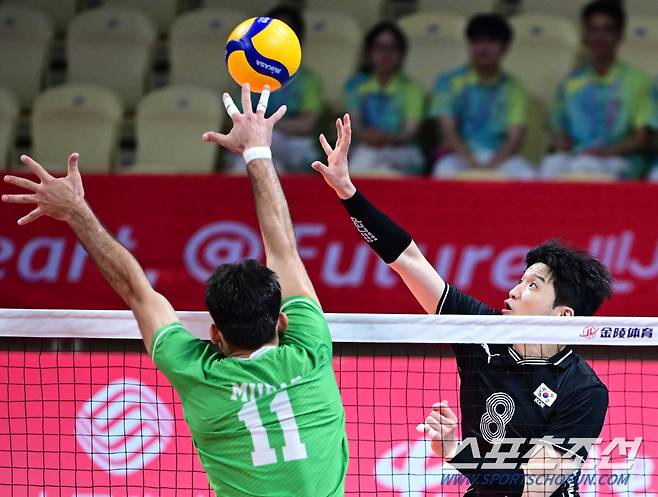 22일 중국 사오싱 스포츠센터체육관에서 열린 항저우아시안게임 남자배구 대한민국과 파키스탄 12강전 경기. 대표팀 정지석이 볼을 넘기고 있다. 사오싱(중국)=송정헌 기자songs@sportschosun.com/2023.09.22/