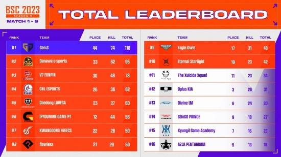 이들 중 젠지가 비켄디 치킨의 주인이 됐고, 그들은 토탈 118점을 기록하며 '배틀그라운드 스매쉬 컵' 시즌9의 우승을 차지했다.