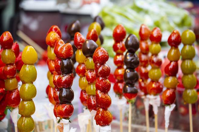 [이데일리 이순용 기자] 최근 MZ세대를 중심으로 폭발적인 인기를 끌고 있는 디저트가 있다. 주인공은 바로 ‘탕후루’. 딸기, 거봉, 귤 등의 과일에 설탕물을 입힌 중국 간식이다. ‘과일이니까 건강에 좋을 것’이라고 생각할 수 있지만 오해다. 매일 같이 탕후루를 섭취한다면 오히려 건강을 헤칠 수 있다.