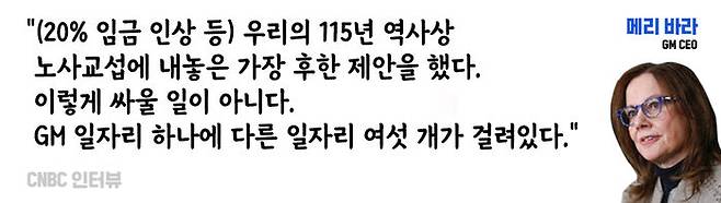 현재 빅3 사측의 얼굴로서 매체에 등장하는 GM의 CEO 메리 바라(Mary Barra)는 CNBC 인터뷰에서 이렇게 얘기했다.