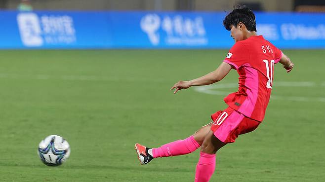 한국 여자 축구 대표팀의 '중원'을 이끄는 지소연(수원 FC)이 2022 항저우 아시안게임 여자 축구 미얀마와 조별리그 E조 1차전에 선발 미드필더로 출전해 3-0 완승에 기여했습니다.