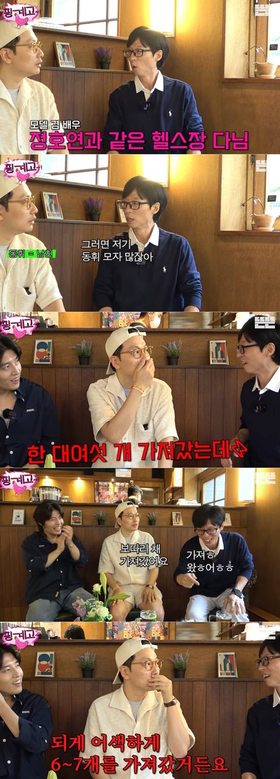 이날 유재석은 이동휘의 오랜 연인 정호연과 함께 헬스장을 다닌다며 반가워했다.
