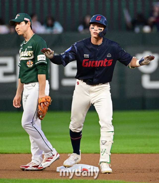 윤동희는 1회초 선두타자로 나와 김광현의 2구째 144km 패스트볼을 밀어 쳐 우중간을 가르는 2루타로 기분 좋게 시작했다. 이후 홈까지 밟으며 선취득점에 성공했다. 그리고 3회초 1사 후에는 김광현이 자랑하는 슬라이더(134km)를 공략해 좌전 안타를 쳤다.