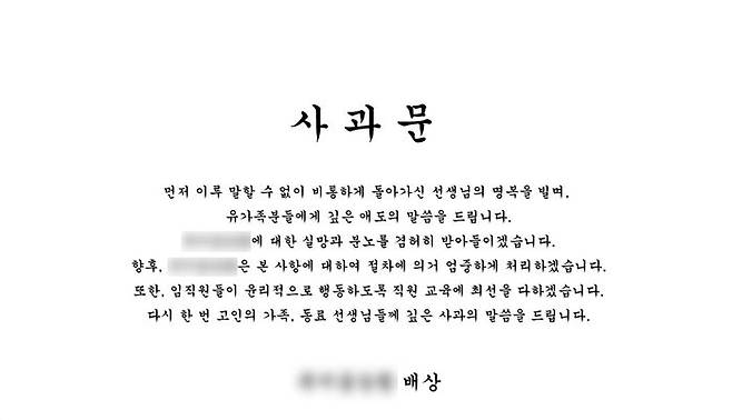 이어 "임직원들이 윤리적으로 행동하도록 직원 교육에 최선을 다하겠다"며 "다시 한번 고인의 가족, 동료 선생님들께 깊은 사과의 말씀을 드린다"라고도 했습니다.