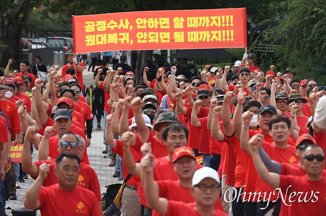 | ▲ 해병대 예비역과 예비역 가족들이 23일 오후 서울 용산구 대통령실 인근에서 해병대 예비역 전국연대 주최로 열린 ’고 채 해병 순직 진상규명 촉구 및 해병대수사단 수사 외압 규탄 집회’에 참석해 호우피해 실종자 수색작전 중에 발생한 해병대 고 채 모 상병 순직 사건에 대한 철저한 진상규명, 재발방지 대책 수립, 지휘 책임자 처벌과 박정훈 전 해병대 수사단장의 명예 회복 등을 촉구하고 있다. |
