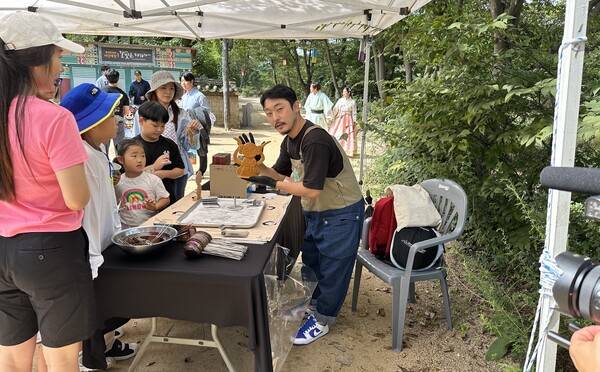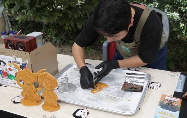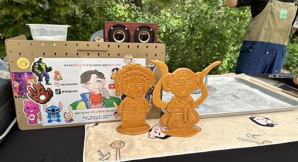 판소리 공연에서 다음 장소로 넘어가면 포토존과 민속놀이를 즐길 수 있다. 한복을 대여한 커플들이 예쁘게 사진 찍는 모습을 보니까 나중에 여자친구와 함께 와야겠다는 생각이 절로 들었다. 포토존 옆에 바람:연 캐릭터 모양 달고나를 만드는 국내 유일 달고니스트 '윤철'도 만날 수 있다. 달고나도 예술의 경지라니. 유튜브로만 봐왔던 제작 과정을 직접 보니까 새롭고 신기했다.
