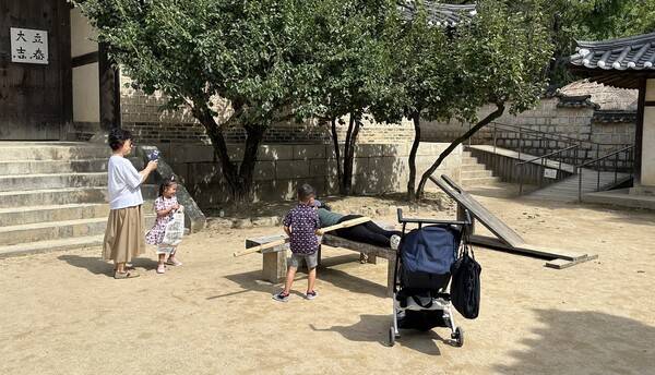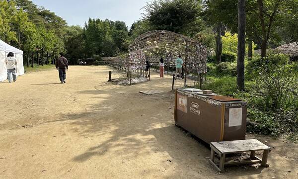 굿즈를 받고 행사장에 입장했다. 앞서 말했듯이 민속촌의 풍경은 이미 기억 속에서 희미해진 터라 모든 것이 새롭다. 저렴한 입장료와 숨이 확 트이는 듯한 공간 배치는 가족들이 선호할 만했다. 민속촌 입구에 들어서자마자 바람:연 행사장이 보이지 않기에 잠깐 헤맸다. 알고 보니 입구에서 더 들어가야 진짜 입구가 나오는 것이었다.