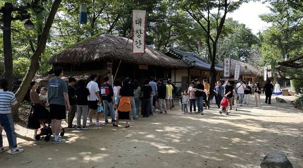 주차장에 도착하니까 놀라온 풍경이 시선을 사로잡았다. 솔직히 "요즘 한국민속촌 누가 갈까"라고 생각했다. 하지만 주차장 공간이 없을 정도로 많은 인파가 몰렸다. 가족 단위 방문객이 대부분이었으며 외국인 방문객도 많이 보였다.