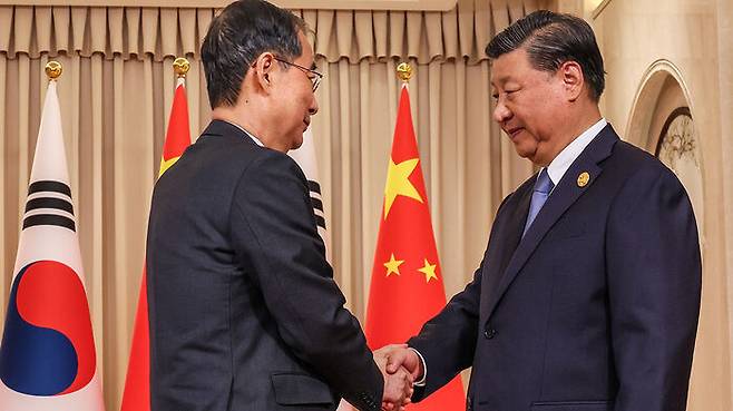 시진핑 만난 한덕수 "건강하고 성숙한 한중 관계 발전해나가길"