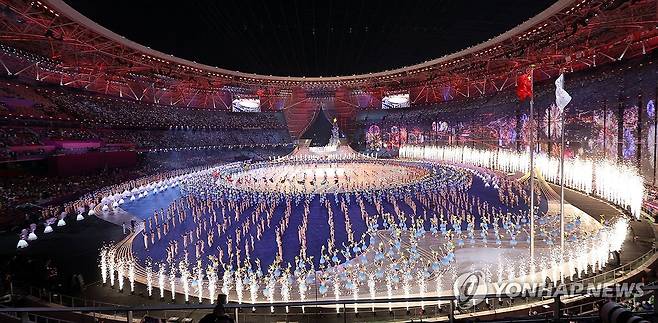 (항저우=연합뉴스) 김인철 기자 = 23일 오후 중국 항저우 올림픽 스포츠센터 스타디움에서 열린 2022 항저우 아시안게임 개회식에서 화려한 공연이 펼쳐지고 있다. 2023.9.24
