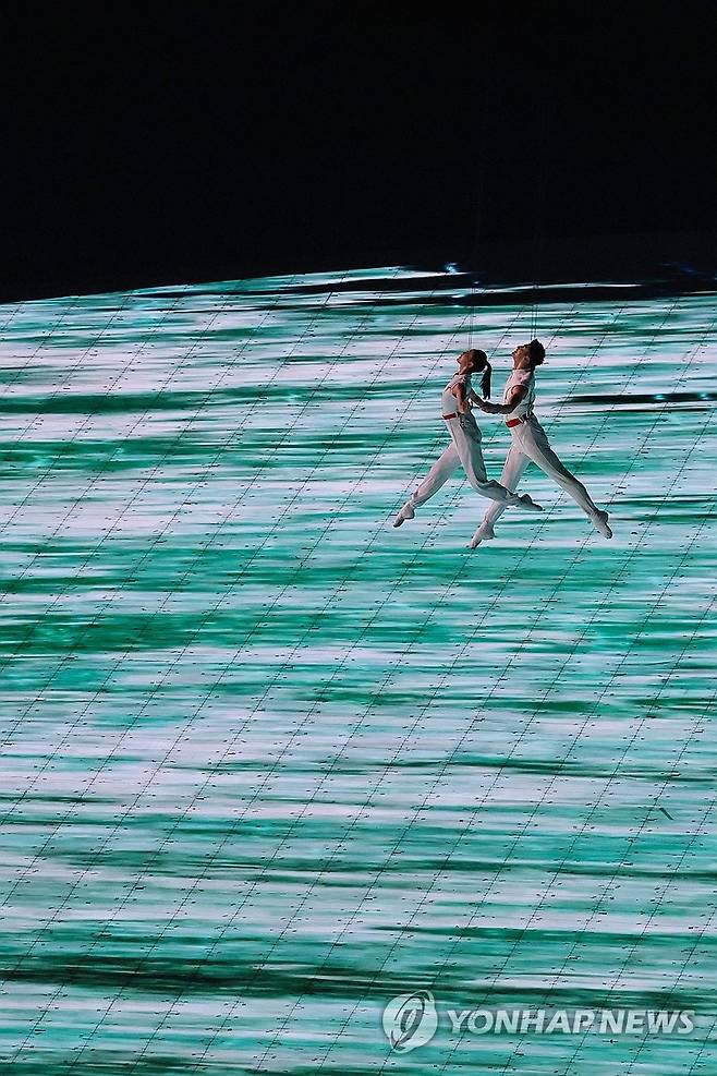 (항저우=연합뉴스) 신현우 기자 = 23일 오후 중국 항저우 올림픽 스포츠센터 스타디움에서 열린 2022 항저우 아시안게임 개회식에서 공연이 펼쳐지고 있다. 2023.9.24