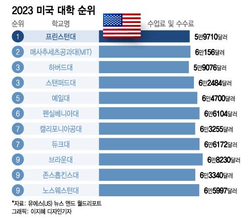 이어 △6위 펜실베니아대 △공동 7위 캘리포니아공대·듀크대 △공동 9위 브라운대·존스홉킨스대·노스웨스턴대 순이었다.
