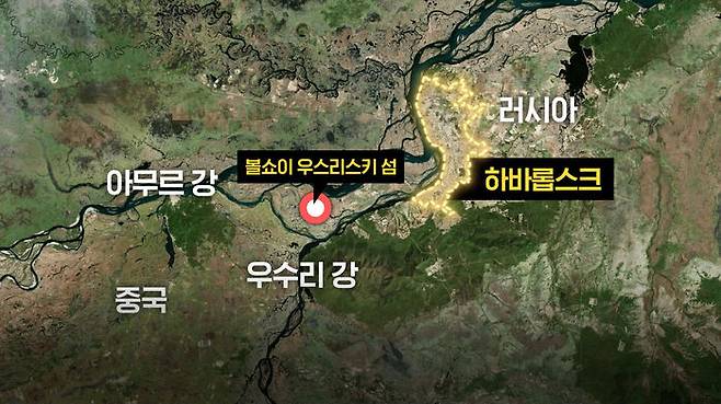 그런데 여기 러시아와의 분쟁 지역도 포함돼 있습니다. 볼쇼이 우스리스키 섬 중국명 헤이샤쯔인데요. 아무르강과 우수리강이 만나는 지역에 위치하고 있는 삼각주입니다. 서울 면적의 절반 정도 크기의 섬입니다. 김정은 위원장이 방문한 하바롭스크와 멀지 않은 지역에 위치해 있습니다.
