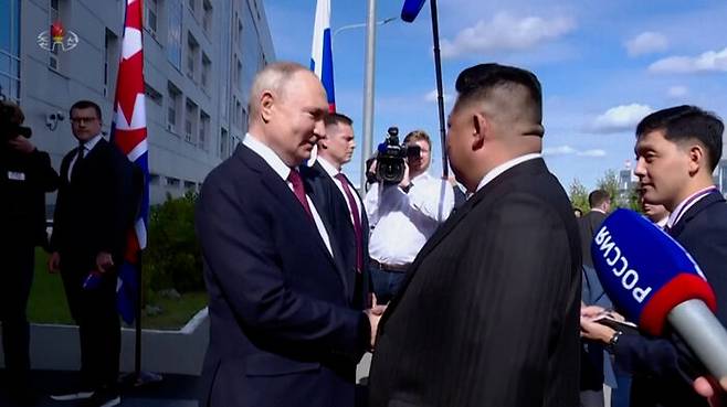 하지만 이번에 김정은 위원장과 정상회담을 할 때 푸틴 대통령은 보스토치니 우주기지에 30분이나 일찍 나와서 먼저 기다렸습니다. 악수는 무려 40초 동안이나 했고요.
