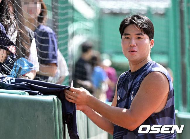 롯데 포수 손성빈이 팬들에게 사인을 해주고 있다. 2023.09.24 /cej@osen.co.kr