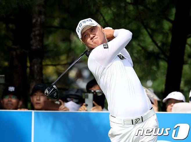 (서울=뉴스1) = 허인회가 24일 경북 파미힐스CC에서 열린 'iM BANK 오픈' 파이널 라운드 9번홀에서 드라이버 티샷을 하고 있다. (KPGA제공) 2023.9.24/뉴스1