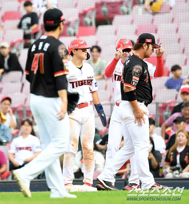 2023 KBO리그 KIA 타이거즈와 KT 위즈의 경기가 24일 광주기아챔피언스필드에서 열렸다. 8회말 2사 1루 KIA 김도영이 견제에 걸려 아웃됐다. 광주=박재만 기자pjm@sportschosun.com/2023.09.24/