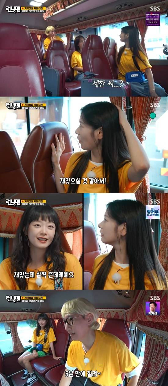 이후 버스에 정소민이 올라탔다. 이에 전소민은 "옆자리에 누가 왔으면 좋겠느냐"고 물었고, 정소민은 "세찬씨"라고 답했다. 양세찬이 재밌기 때문에 심심하지 않을 것 같다는 이유에서였다.