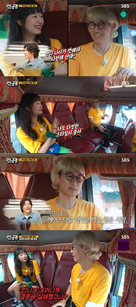이날 '런닝맨' 멤버들은 미션을 위해 이동을 하던 중 소소한 이야기들을 나눴다. 가장 먼저 버스에 올라탄 지석진과 전소민은 쉬는 시간에도 콘셉트에 충실했다. 오늘 하루 여자로 변신한 지석진을 향해 전소민은 "언니~"라고 부르며 수다를 시작했다.