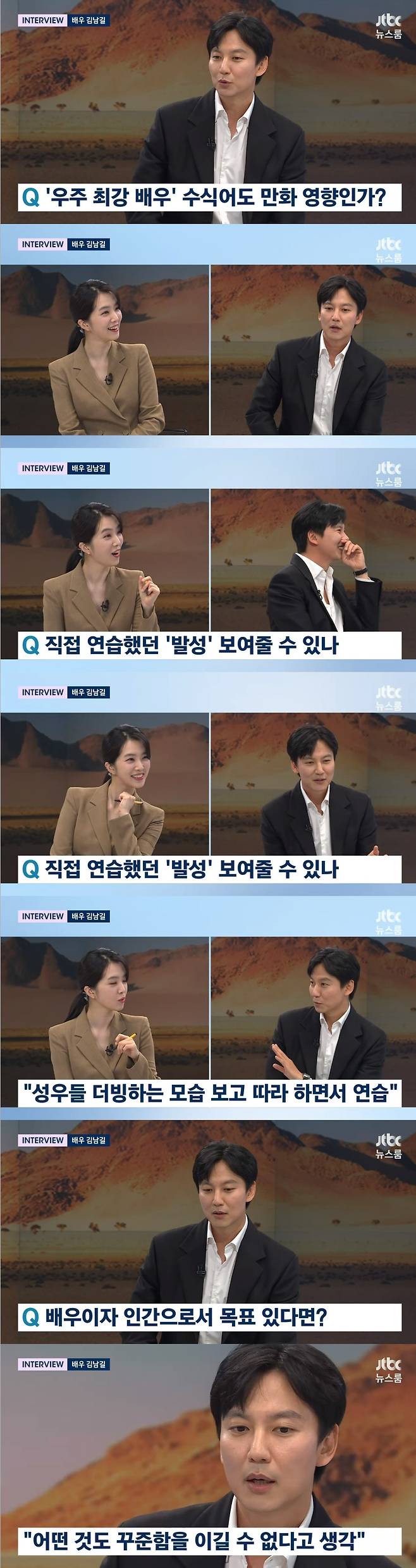 강지영 아나운서는 "'우주 최강 배우'도 만화에서 따온 느낌이다"라고 했고, 김남길은 "제가 가장 정점에 있는 배우가 되려면 어떤 수식어를 붙일까 (하다가 만들게 됐다)"라고 이야기했다.