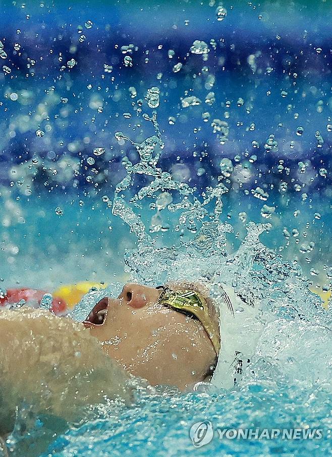 (항저우=연합뉴스) 홍해인 기자 = 이주호가 24일 중국 항저우 올림픽 스포츠센터 수영장에서 열린 2022 항저우 아시안게임 남자 배영 100m 결승에서 역영하고 있다. 2023.9.24