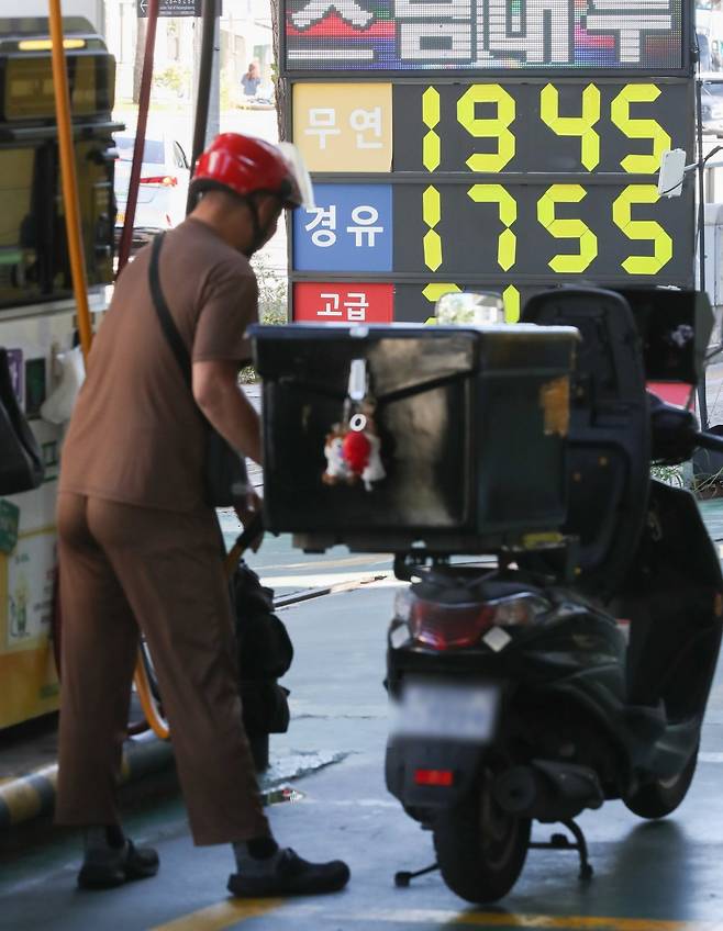 24일 오전 서울 시내의 한 주유소에 유가 정보가 표시돼 있다. 한국석유공사 유가 정보 사이트 오피넷에 따르면 9월 셋째 주(17∼21일) 전국 주유소 휘발유 평균 가격은 전주 대비 16.7원 오른 L당 1776.3원으로 11주 연속 오름세를 이어갔다.