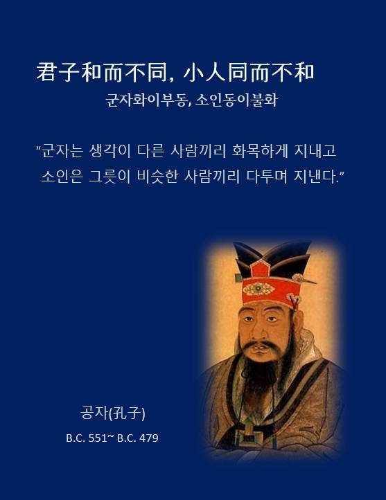 사람들이 불완전한 존재로서의 동질성을 나누며 서로의 다름을 인정하고 자기의 생각을 강요하지 않는 것이 쉽지는 않습니다. 공자는 '군자는 화이부동(和而不同)하고 소인은 동이불화(同而不和)한다'고 했는데 '화이부동'은 생각이 다른 사람들끼리 조화롭게 지내는 것을 뜻합니다. 그 조화가 가능한 것은 근원적으로 같은 점을 공유하기 때문이지요. 반면, 사람은 근원적으로 다르다고 생각하거나, 자신의 생각과 남이 같아야 한다고 여길 때 온갖 불화와 갈등의 씨앗이 싹트겠지요.