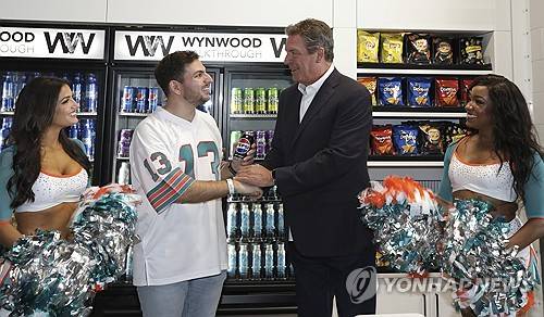 IMAGE DISTRIBUTED FOR PEPSICO - Miami Dolphins legend Dan Marino comes out of retirement to greet fans and officially open the new Wynwood Walkthrough presented by Pepsi concession storefront at Hard Rock Stadium on Sunday, September 24, 2023, in Miami Gardens, FL. (Photo by James McEntee for PepsiCo/AP Images) THIS PHOTO WAS TAKEN BY AP IMAGES FOR PEPSICO
